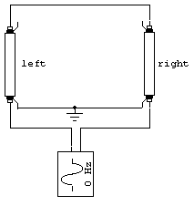 Shown above, unbalanced differential mode excitation of the center conductor without SWR adjustment. This is still distributed capacitance critical with the left side having limited primary control of SWR, but it has better balance than the system with a floating center conductor and more symmetrical shield currents.