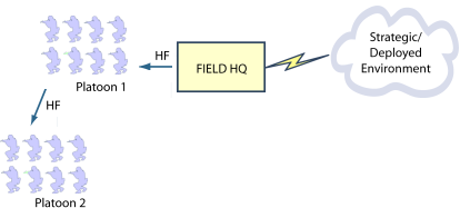 In the scenario illustrated above, there is no direct communication from field HQ to a second field unit., but messages can be relayed by use of the messaging system in the first field unit. This relay needs to be fully automated, and not require manual intervention at the first field unit.