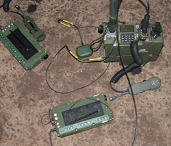 A typical military HF Radio is shown above. This is a Harris radio used in the UK BOWMAN project. This unit weighs 4.5kg (without batteries) and has ranges as follows: