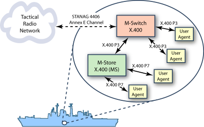 Isode refers to this M-Switch X.400 Configuration as "STANAG 4406 Annex E Gateway (Mobile)".