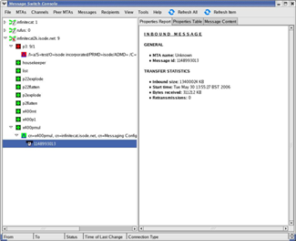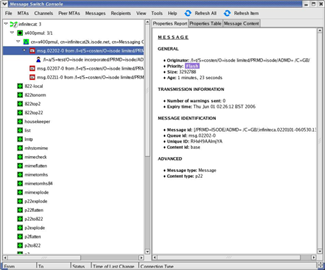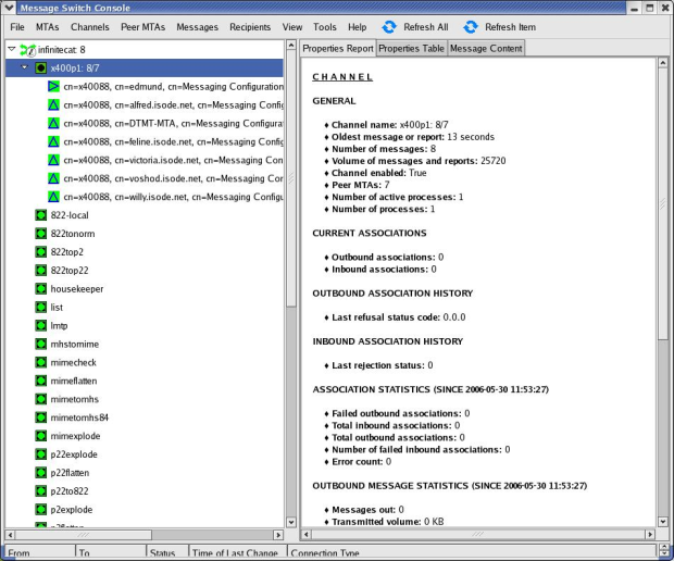 Management applications interact with the QMGR using the Isode SOM (Switch Operational Management) protocol. Isode provides 'C' and Java client APIs to SOM, to enable third party management applications to work with QMGR. Isode provides the MConsole GUI, as a part of M-Switch X.400 which allows operators to view message and queue status, and perform control operations, such as pausing transfer, requesting non-delivery, and redirection of messages. The following screenshots show of the capabilities of MConsole.